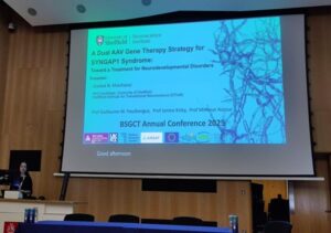 Amongst the presenters giving a talk was Ouidad Khechaoui, a PhD in her final year from the University of Sheffield, who is supervised by ARDAT members Prof Mimoun Azzouz and Prof Janine Kirby, as well as Prof Guillaume Hautbergue. Ouidad gave an excellent presentation describing her work on a dual AAV9 gene therapy strategy for the treatment of a rare autosomal dominant neurodevelopmental disorder caused by mutation of the SYNGAP1 gene. Ouidad received an award for her talk, the ESGCT Oral Presentation Winner, so an enjoyable and successful day for our ARDAT researchers.